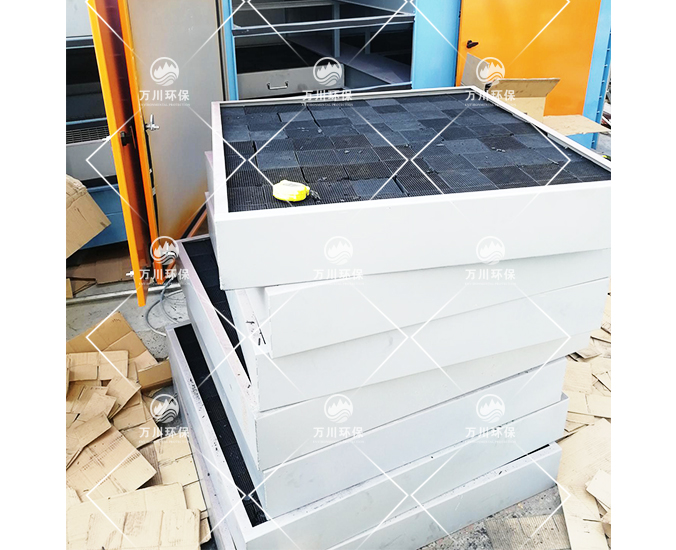 2.塔體設計交流錯位過風,過風面積大,阻力較小,采用抽屜式設計,更換活性炭非常方便,且流速均勻,吸附效率高。