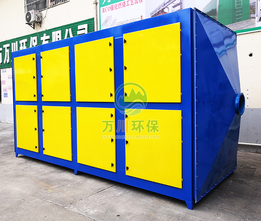 橡膠廢氣從管道進(jìn)入到設(shè)備內(nèi),穿過第一層噴淋層,用水沖洗廢氣,再進(jìn)入到第二、第三層填料層,去除水溶性的粉塵和廢氣,最后進(jìn)入到活性炭吸附層,利用活性炭的吸附力,吸附有機(jī)廢氣,達(dá)到凈化的效果。
